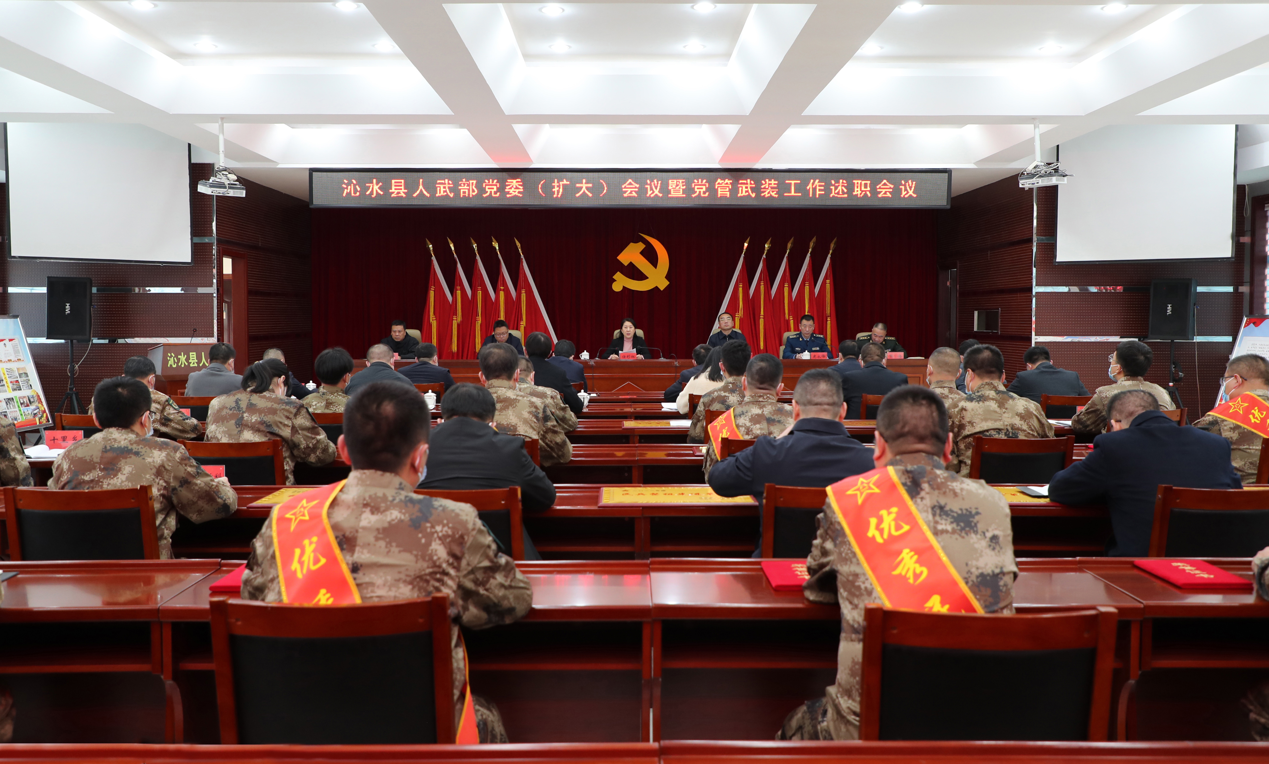 (本网讯)3月1日,县人武部党委(扩大)会议暨党管武装工作述职会议召开。会议以习近平新时代中国特色社会主义思想为指导,深入贯彻习近平强军思想,全面落实省军区、军分区党委(扩大)会议精神,总结2022年工作,部署2023年重点任务。县委书记、县人武部党委第一书记任彩虹出席会议并讲话。县委副书记王东胜,县委常委、常务副县长李小斌出席会议。县委常委、县人武部政治委员史永锋主持会议。副县长刘勇、县人武部部长张海出席会议。