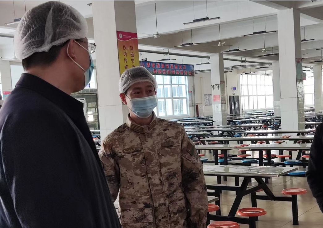 县委常委,县人武部政委任荣对高青县第三中学进行现场督导。