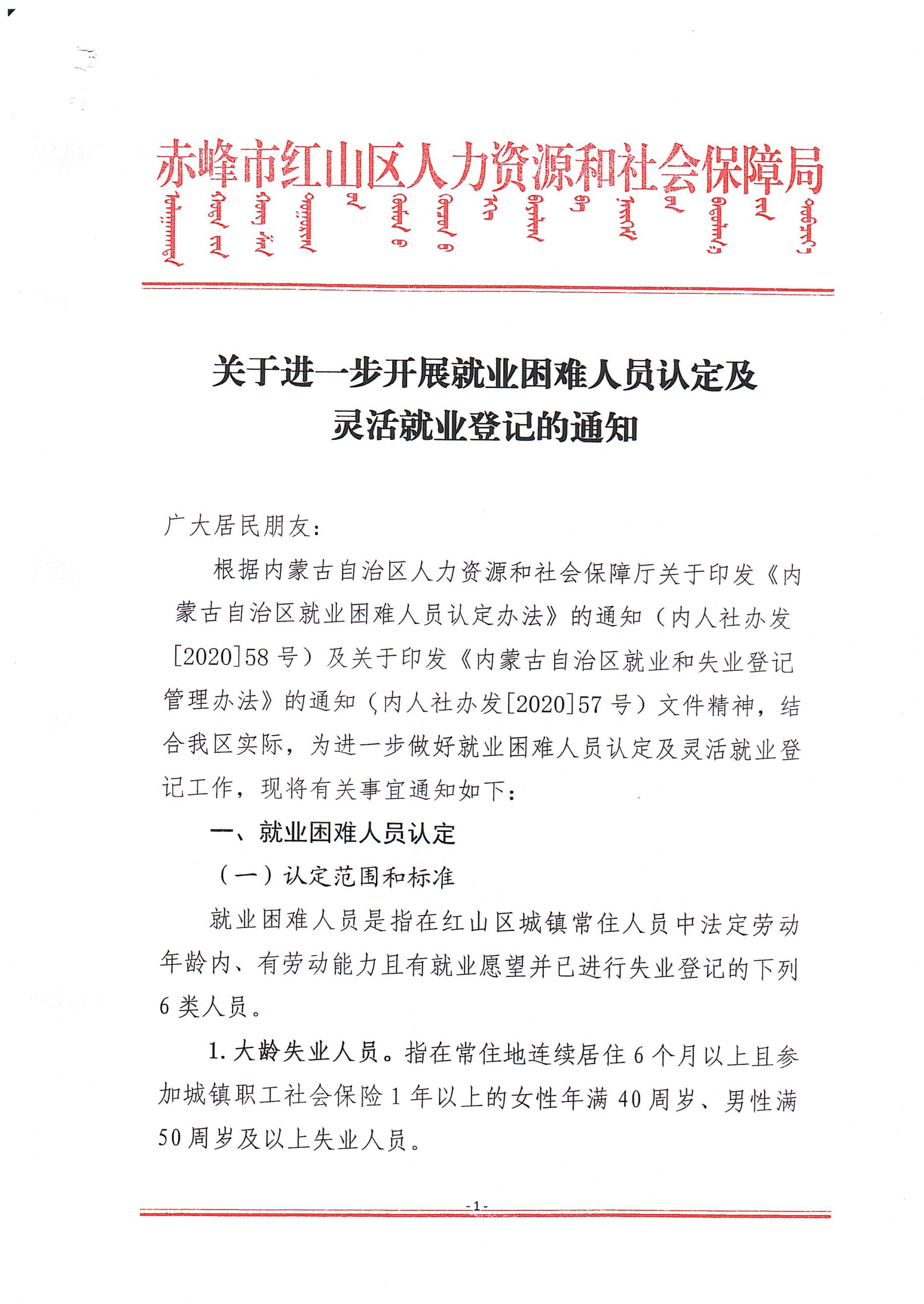 关于进一步开展就业困难人员认定及灵活就业登记的通知
