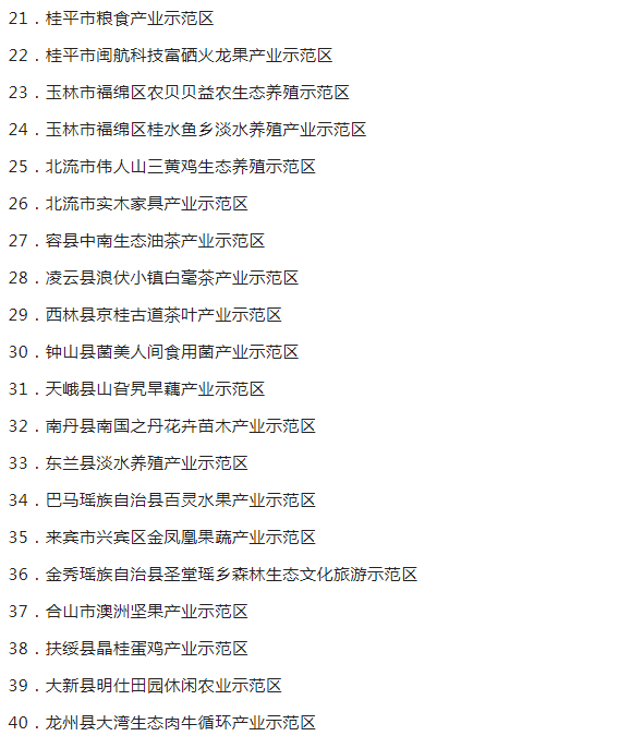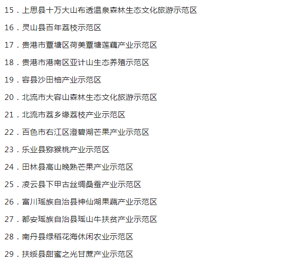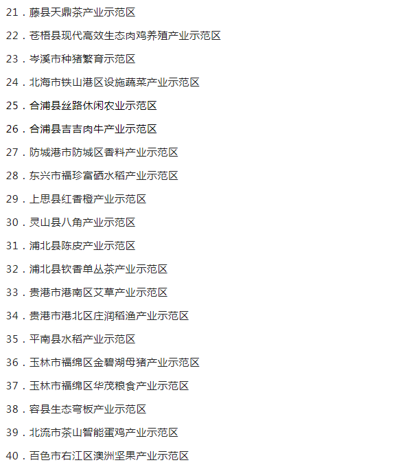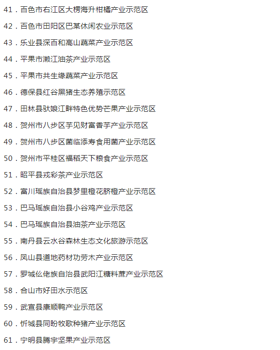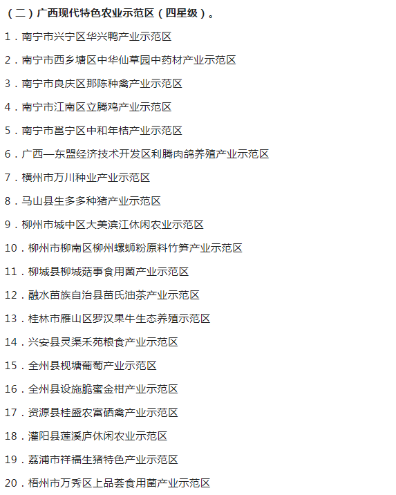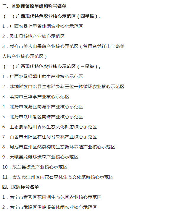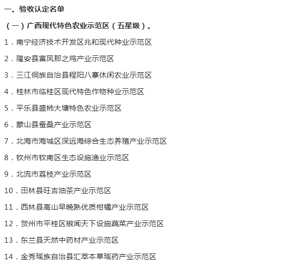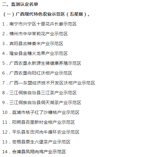广西现代特色农业示范区验收监测认定名单的通知