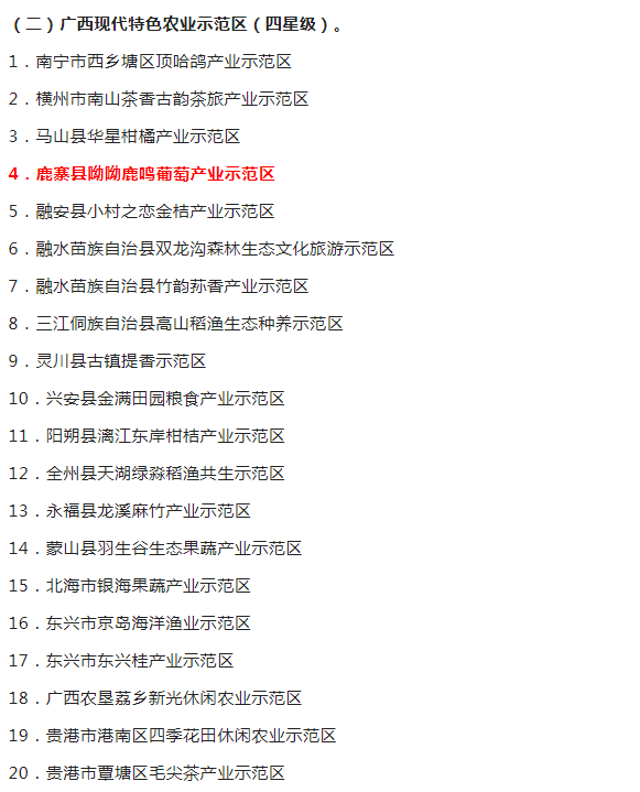 鹿寨县呦呦鹿鸣葡萄产业示范区榜上有名