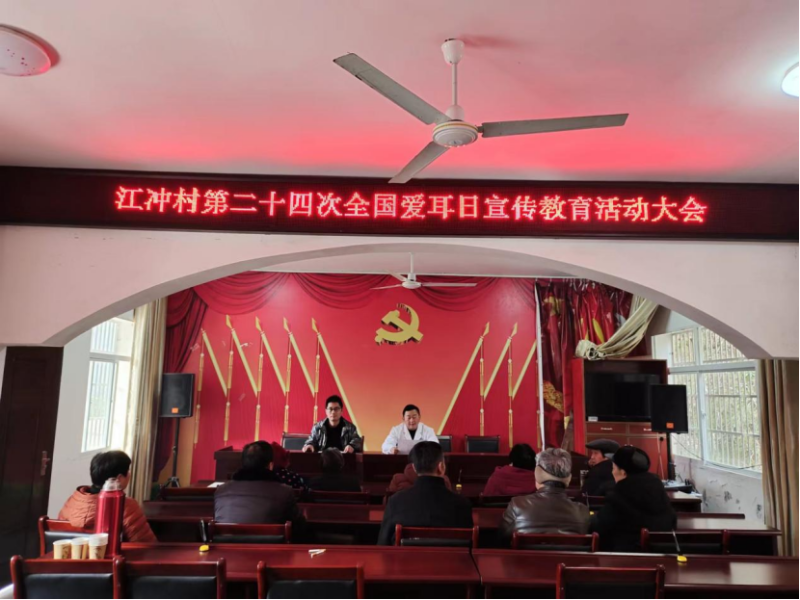 健康讲堂送下乡。在江冲村新时代文明实践站大讲堂内,医生杨涛从不良生活习惯及噪声对听力的损害、如何预防听力障碍以及听力受损后如何保护等方面为村民们科普护耳的基础知识,大力宣传听力残疾预防的重要性与必要性,增强村民对听力障碍的预防意识。