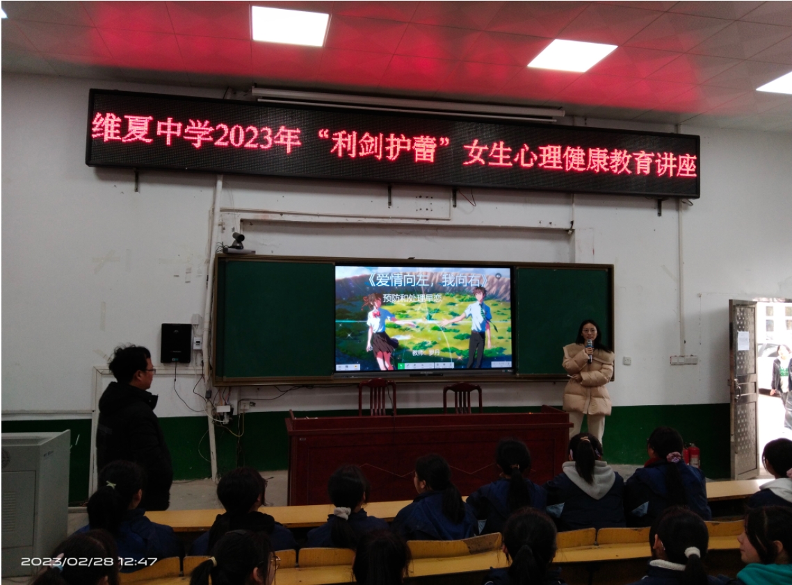 为了进一步推动“利剑护蕾”工作的实施,加强青少年思想道德建设和心理健康教育,2月28日至3月1日,维夏中学在阶梯教室召开七年级“男生女生心理健康教育讲座”,给正处于青春期的七年级学生解疑答惑,呵护祖国的花朵!