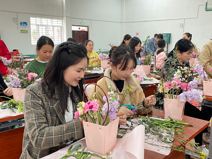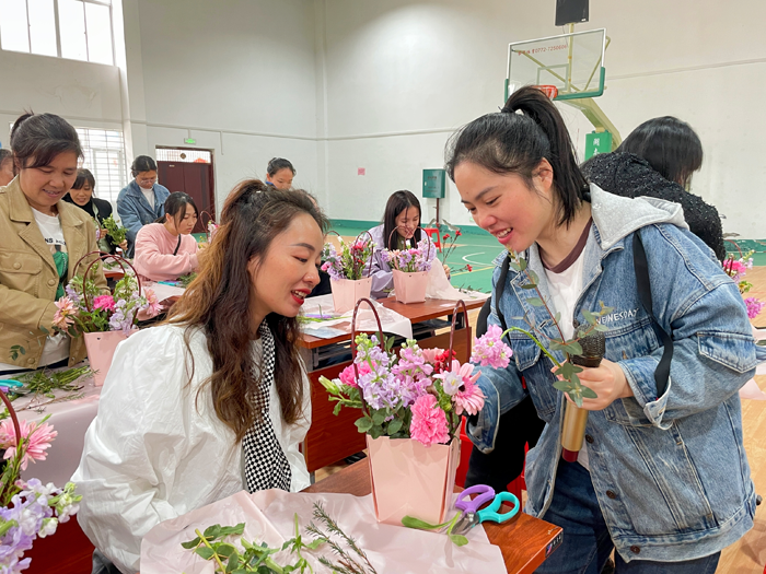 开展插花艺术沙龙活动。活动现场花团锦簇,欢声笑语,花草的气息芬芳怡人,到处沾染着春天的生机与烂漫。在花艺老师的指导和示范下,各位“女神”用灵巧的双手,将一朵朵鲜花错落有致地装饰、搭配、点缀成花艺作品,为自己送上一份特别的节日祝福。