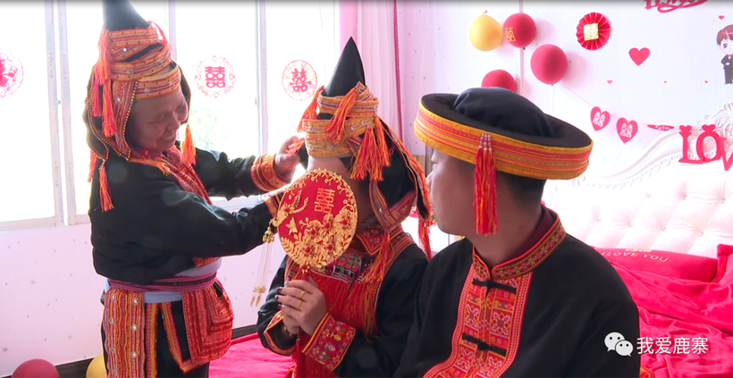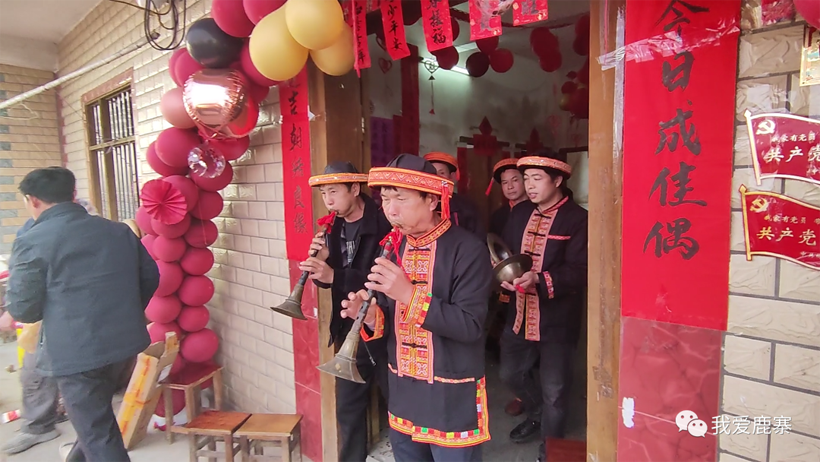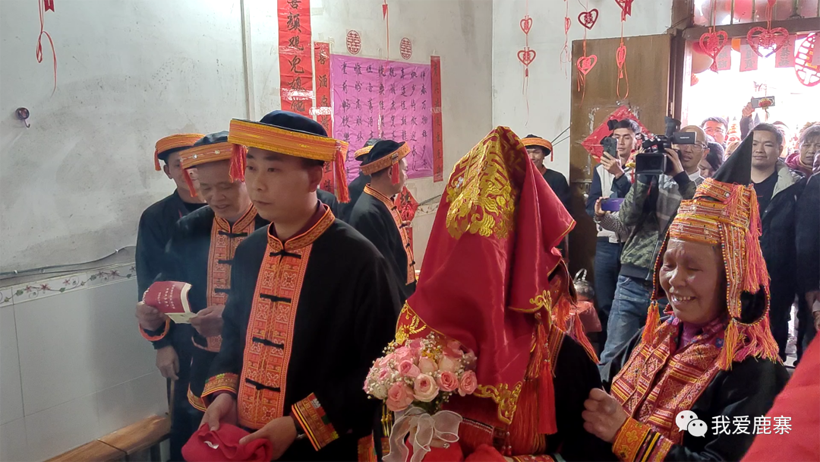 新人的朋友冯女士说:“这边是瑶族的传统服饰很有特色,人也很多,还有唢呐之类的,很热闹。”