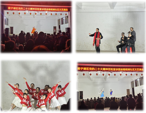 (本网讯)3月3日晚,梁子湖区党的二十大精神百姓宣讲团在梧桐湖社区大舞台进行文艺演出,精彩纷呈的文艺节目既丰富了群众的精神文化生活,又汇聚起奋进新征程建功新时代的强大精神力量。