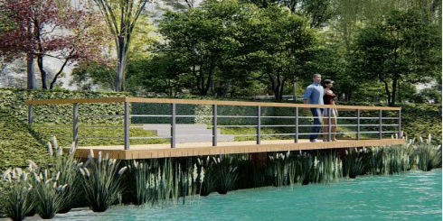 此次建设的二期项目,主要包括建设公园绿道、半地下车库、附属建筑、亮化照明等,集生态海绵观赏游憩、儿童娱乐、休闲运动、复合社会停车等功能于一体。