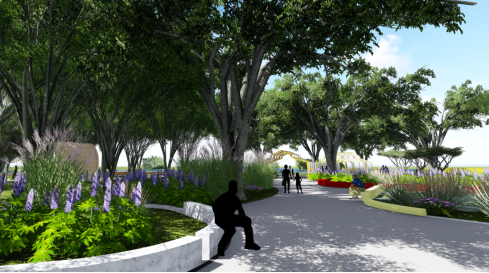 根据规划,项目将在凤凰水域北侧,芳草东路至四新中路之间修建一处半地下车库。车库顶部建设一处管理中心、一处老年人运动场所及儿童活动场所,场地周围布置滑梯、沙坑、秋千、健身器材等设施,打造“全龄友好”的户外活力的开放空间。