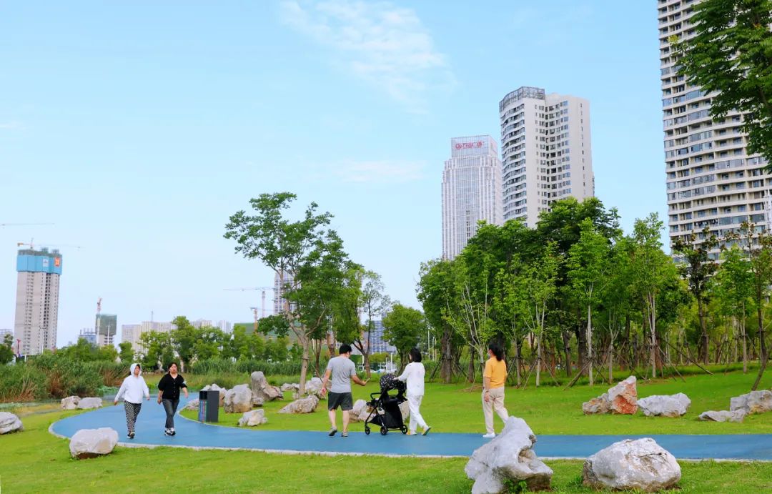 项目负责人介绍,一期工程已于2019年建成开放,总面积为44.48万平方米,建有疏林草地、景观绿植等,为附近居民提供了一处游乐休憩场所。