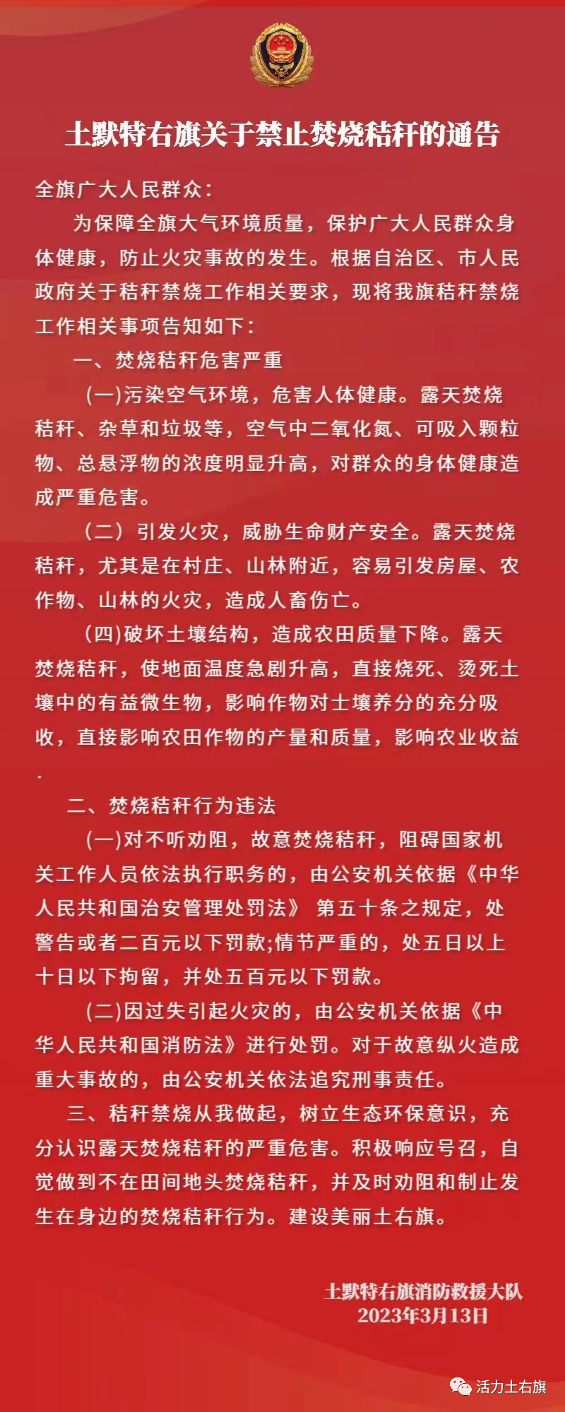 关于禁止焚烧秸秆的通告