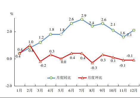 全年居民消费价格比上年上涨1.9%。工业生产者出厂价格上涨2.9%。工业生产者购进价格上涨5.2%。农产品生产者价格上涨0.8%。