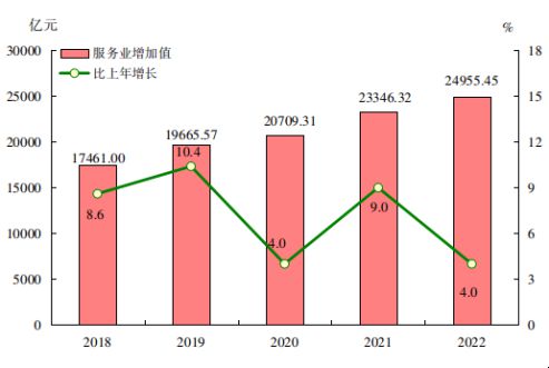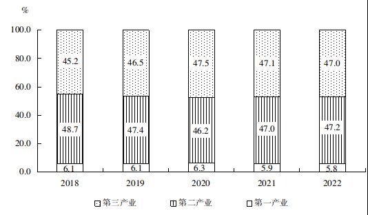 图2 2018-2022年三次产业增加值占地区生产总值比重