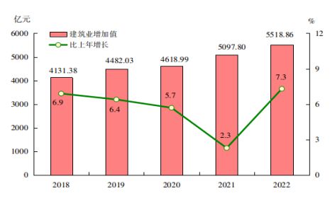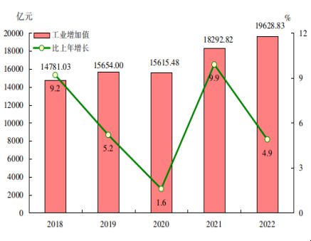 图5 2018-2022年全部工业增加值及其增长速度