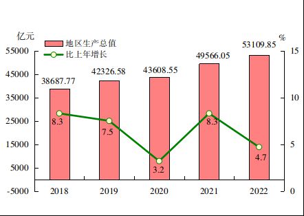 图1 2018-2022年地区生产总值及其增长速度
