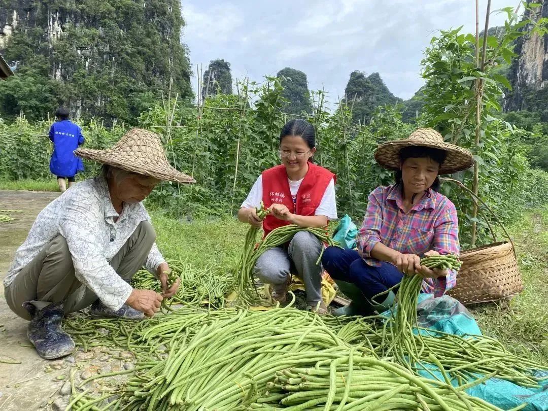 余贝和村民一起整理豆角。