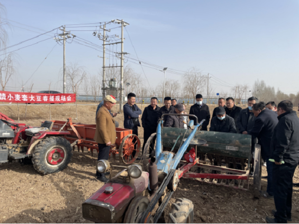 春播不误时,技术是关键。为顺利完成2023年粮食种植任务目标,推广小麦大豆套种模式,习岗镇在五星村组织召开春播现场会,邀请农技专家现场讲解播种技术注意事项,手把手进行技术指导。