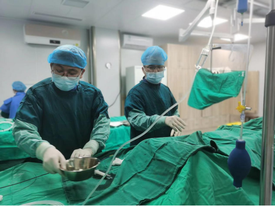 手术当天,神经内科的刘生主任和张乃训副主任带领神经内科介入团队,按预定方案进行精准的手术操作,随着穿刺成功,整个手术一气呵成,仅一个小时便顺利完成。