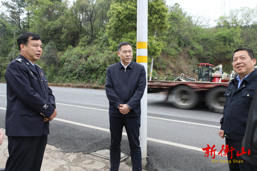 段晓赛首先来到107国道九龙泉坡顶,检查道路交通安全。他指出,要把道路交通安全工作摆在首位,强化风险意识和责任担当,充分动员“两站两员”力量,协助交管部门加强道路交通安全宣传、教育和违法劝导,强化部门协同执法,对主要交通干线、危险复杂路段等重点路段实施重点监管,完善道路安全警示标识,确保全县道路交通安全有序。