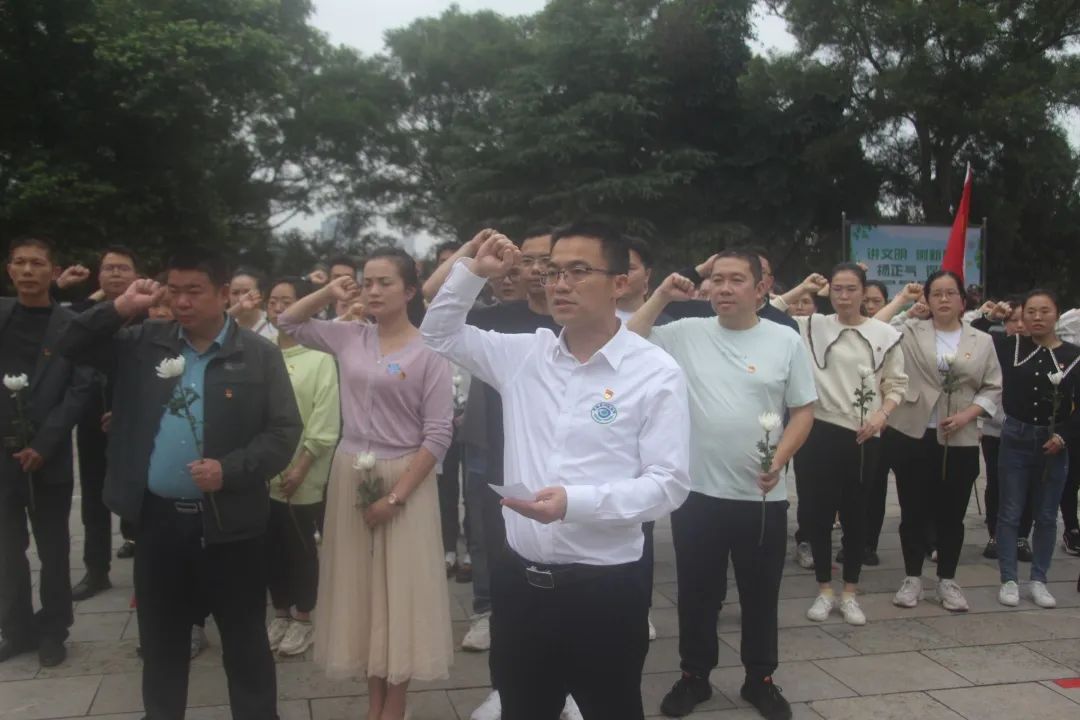 在烈士纪念碑前,全体党员面向党旗,重温入党誓词,表达对党忠诚的初心和为党的事业不懈奋斗的决心。