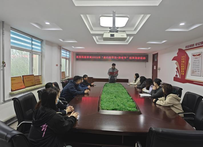 为了弘扬中华优秀传统文化,加深对清明节的认识,传诵经典,追忆先贤,4月4日上午,县市场监管局举行了“诵读经典·传承文明”诵读活动。这是一场生动的爱国主义教育,用诵读这种绿色祭奠的方式,祭奠先辈英烈。
