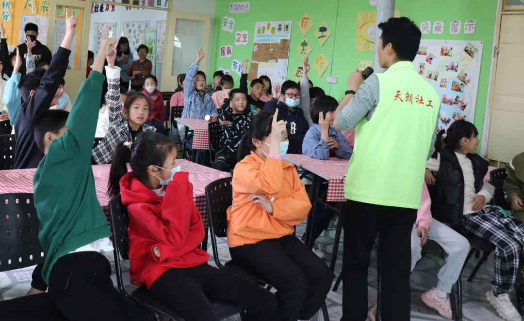 2023年3月12日上午,百户礼堂三楼综合活动室充满了孩子们的欢声笑语,在植树节这一天,天朗社工联动村委和村民志愿者一同开展一场“小树同心·友爱同行”植树节社区活动,现场招募邀请了许多在今年项目初期调研中挖掘出的新参与社工服务活动的孩子,用一场活动,让社工与孩子们相互认识、相互了解。