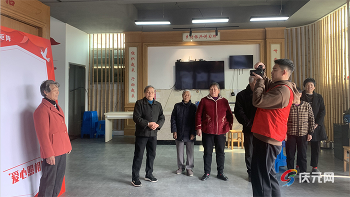 “一二三,笑一下,开心点,再来一张……”近日,“屏都街道技能青年团”志愿服务队来到蔡段村文化礼堂,为当地的老人们免费拍摄照片。