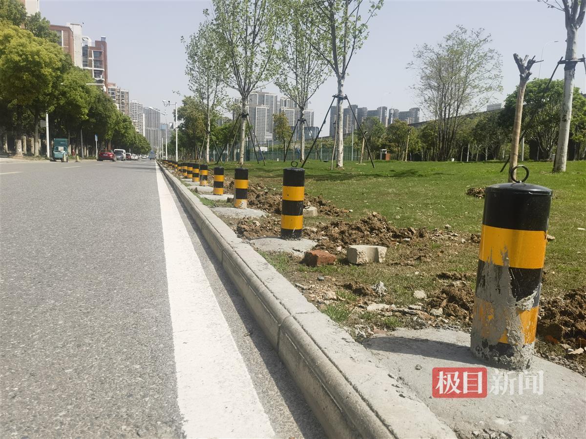 轿车乱停 绿化带变“停车场”,370根隔离桩“上岗”护绿