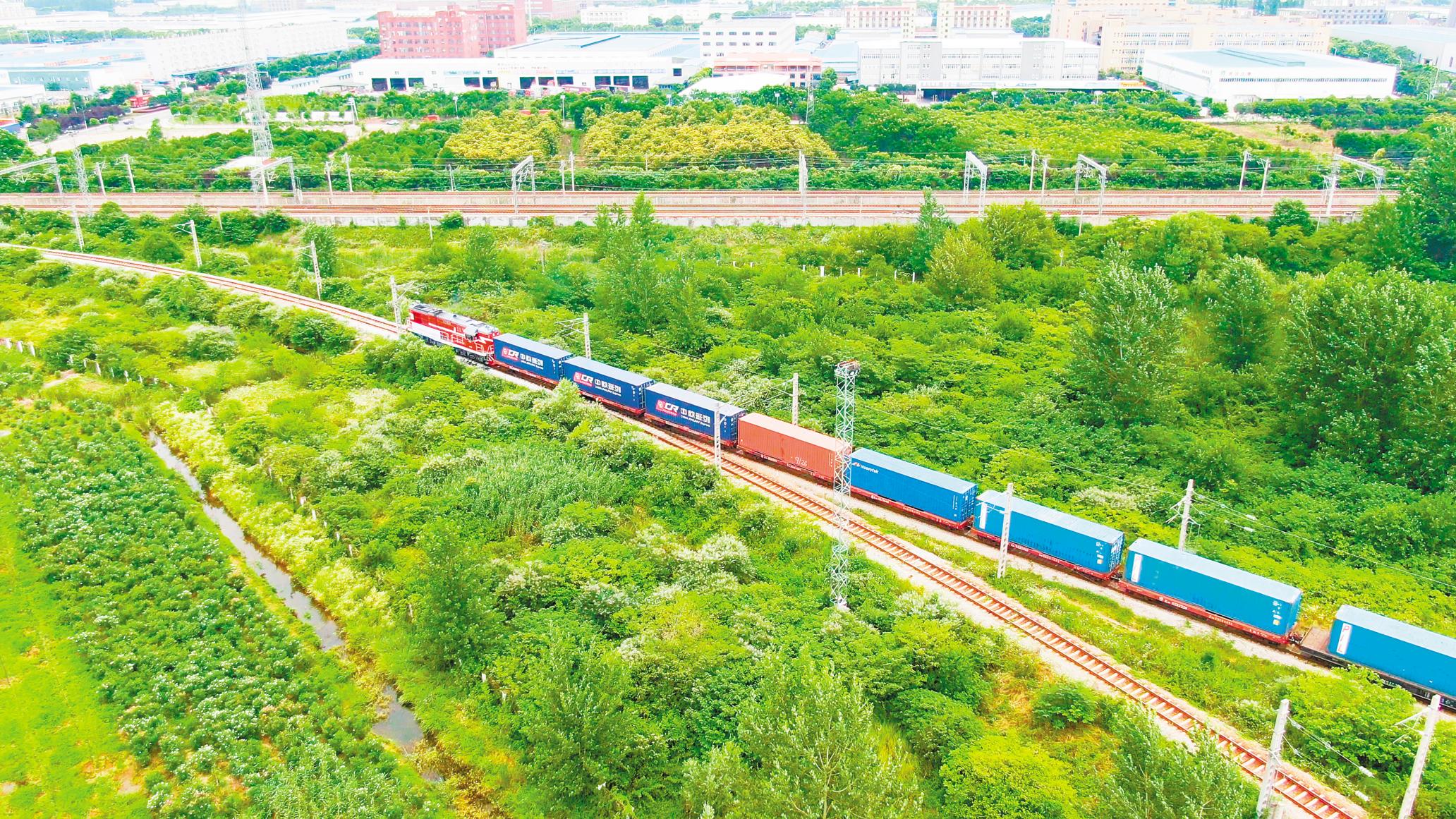中欧班列(武汉)运行在线路上。(通讯员 丁旭 摄)