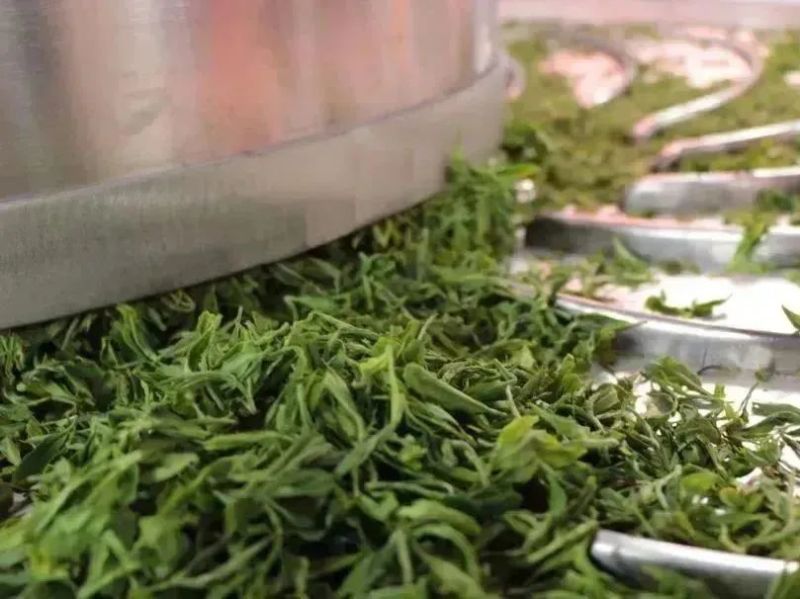 刚采摘的鲜叶从茶园到车间,杀青是绿茶生产的第一道关。邬运辉说,杀青就是绿茶生产最重要的第一道工序。现在使用的是光波杀青机,它具有杀青均匀、图形好、杀青叶颜色好的优点。