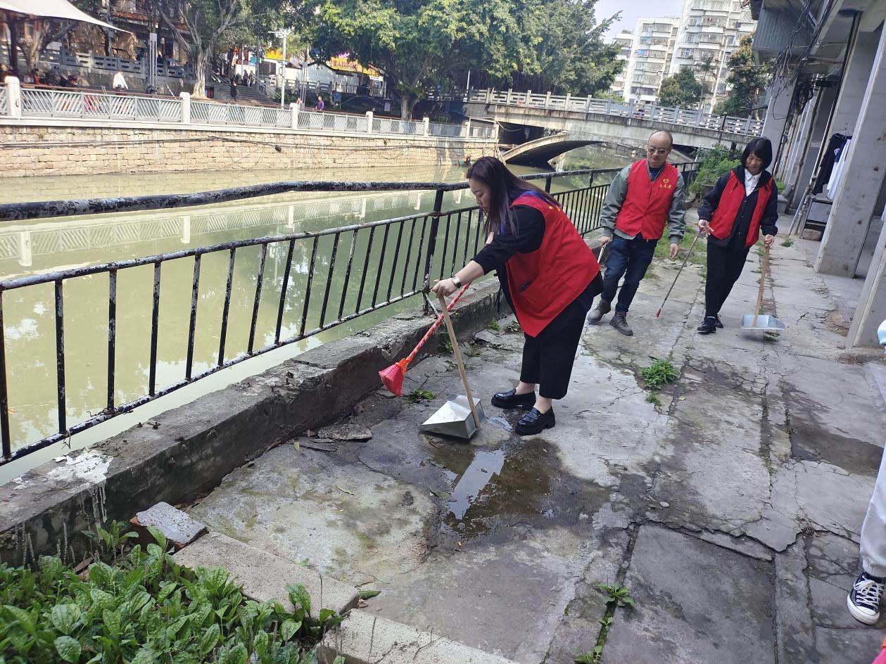 街道河长办以及社区志愿者们穿着红色志愿马甲,在辖区河段认真地进行巡河护河,并开展“宜居靓家园,健康新生活”宣传活动,向来往群众宣传爱河护河、垃圾分类等知识,引导群众树立守护绿水青山的生态文明意识,激发广大志愿者对河湖水系治理和居民环境整治的参与热情,以实际行动助力河湖长制与人居整治。