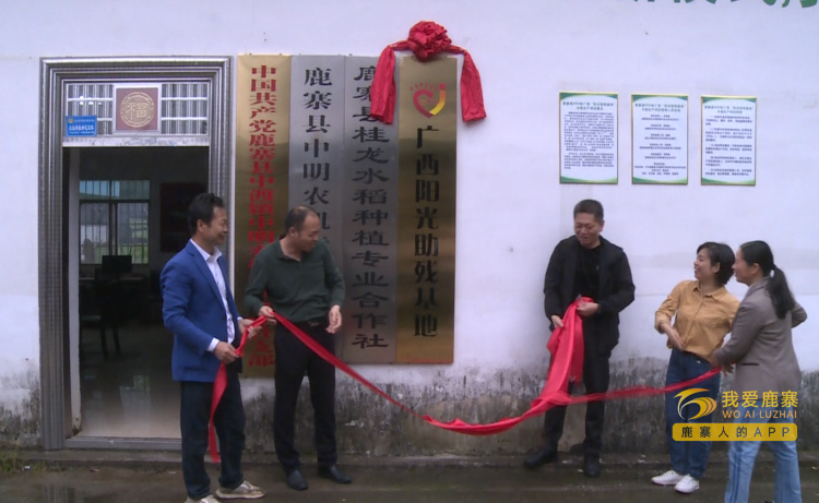 活动中,市、县残联相关人员为鹿寨县桂龙水稻种植专业合作社和绿尚农资有限公司颁发广西“阳光助残基地”牌匾,并为“阳光助残基地”揭牌。
