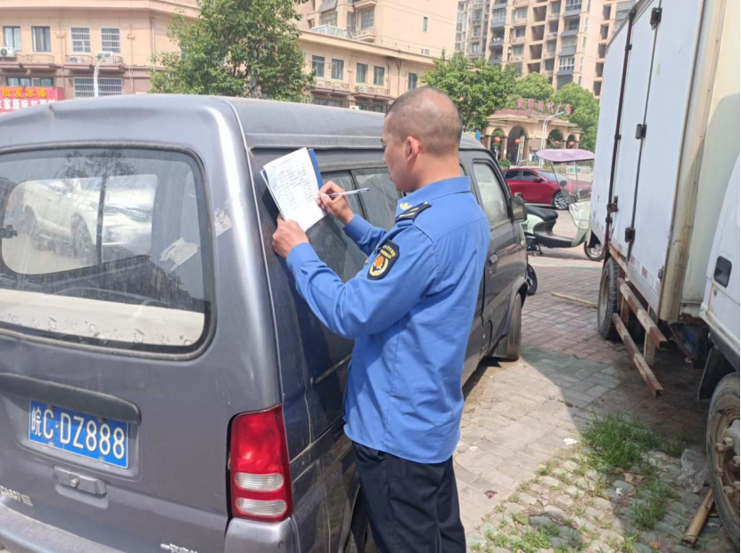 宣传废弃车辆危害。执法人员看到长期停放在路边的“尘土裹身、轮胎干瘪、车身褴褛”的废弃车辆,向所属车主讲述相关危害:随车的旧电瓶释放大量有害气体,随时危及人身健康;车辆长期停放占用了本就紧张的公共停车资源,影响了附近居民的正常出行;破旧的车体与周边整洁环境也是格格不入,累计向居民陈述利害90人次。