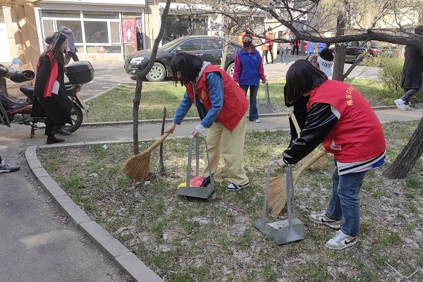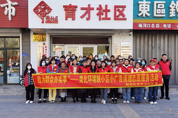 解放街道育才社区联合党建联盟共建单位开展“美化环境靓小区小广告清理”志愿服务活动