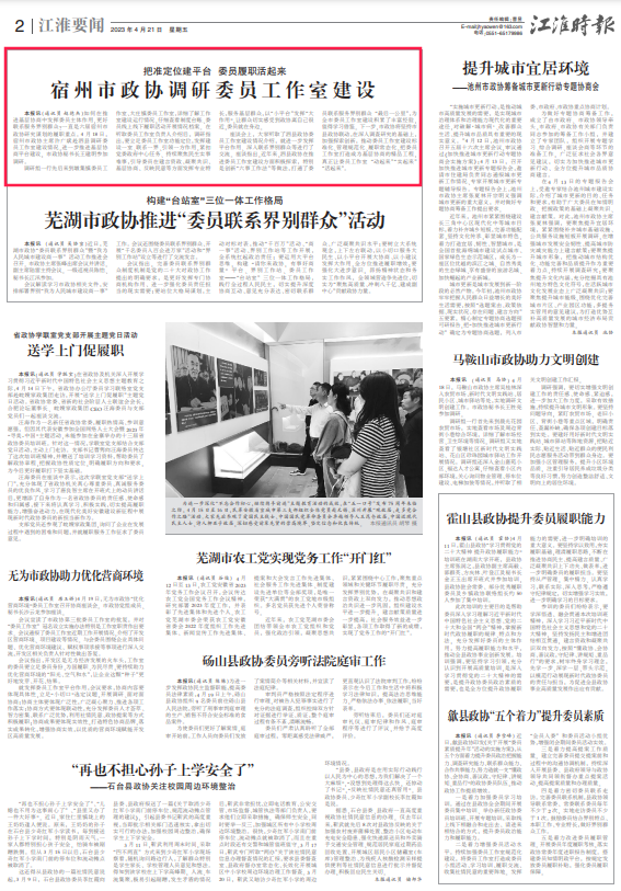 把准定位建平台 委员履职活起来 ——宿州市政协调研委员工作室建设