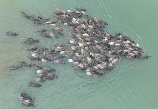 28日上午10时,在蓬安县相如街道油房沟社区,随着雄浑、古朴的牛角号吹响,一名老乡打开江边栅栏门,早已等候在此的大大小小、老老少少的牛儿按捺不住欣喜的心情,争先恐后地冲向嘉陵江。