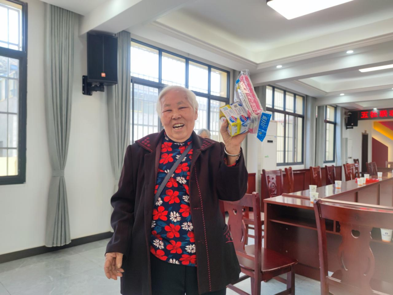 活动中,志愿者带领老人们开展“夹乒乓球”“蒙眼放筷子”等小游戏,详细讲解老年人如何合理搭配饮食等养生小知识。活动期间,志愿者们还给老人们发放了毛巾、香皂等各种小礼品,现场气氛欢快而热烈,每个人的脸上都挂着喜悦的笑容。“这个活动好啊,不仅可以玩游戏,还有礼品拿,以后这样的活动我都要来!”仙女镇烟墩包村村民盛和珍奶奶说。
