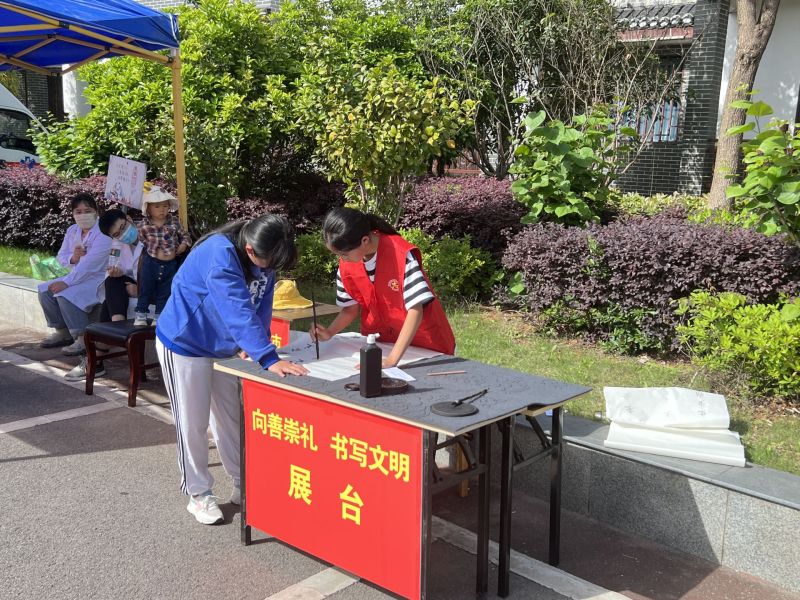 同时,活动现场还设置了“向善崇礼·书写文明”展台,由书法老师带领小朋友书写社会主义核心价值观内容,组织关于精神文明的金句语录诵读和《宜昌市文明行为促进条例》有奖问答,进一步以接地气的形式将习近平新时代中国特色社会主义思想等科学理论宣传给群众。