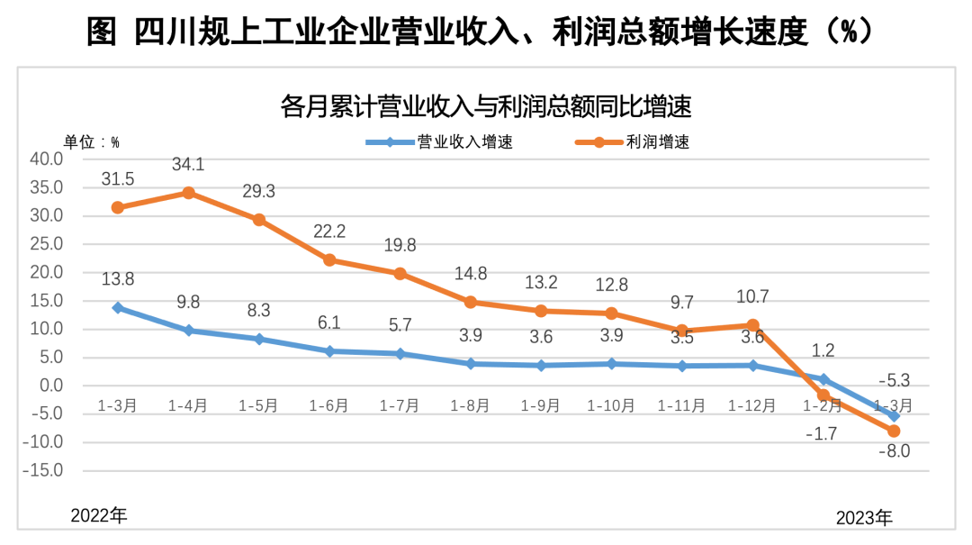 2023年1-3月四川规模以上工业企业利润总额同比下降8.0%