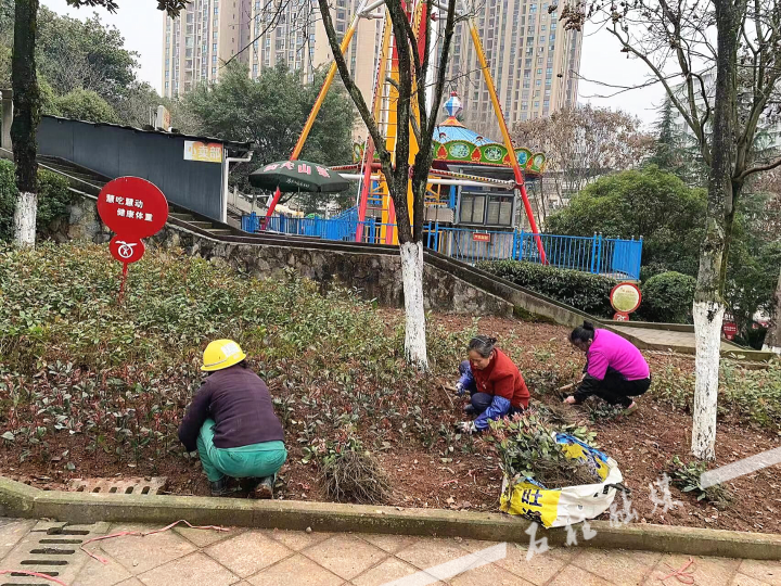 开展美化行动。根据“风情土家寨·精致山水城”建设需要,组织园林工人在将玉带河公园的苗木移栽到都督大道、万寿大道、太白岩公园等绿地,共计移栽补栽红叶石楠、金森女贞等苗木11余万株,在城区公共绿地共补植麦冬、吉祥草、格桑花草籽等19.5吨;更换火车站转盘、石桥子转盘、三店转盘、都督大道绿化带内的孔雀草、四季海棠、夏瑾、洋凤仙等鲜花18万余盆,营造出浓厚的节日氛围;为打造干净整洁的绿化景观,园林工人对都督大道、万寿大道等主干道两旁的灌木进行修枝整形。