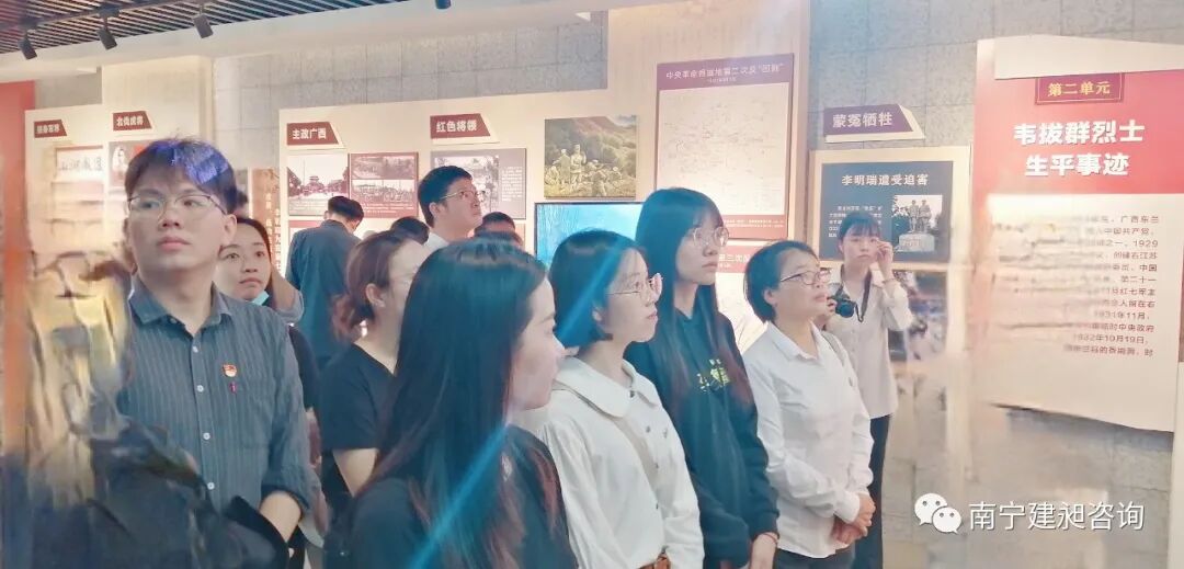 仪式结束后,全体人员步入李明瑞韦拔群烈士纪念馆进行参观。通过本次主题党日活动,让我们树立坚定信心,扎实工作,发挥党员先锋模范作用,把党的二十大精神付诸行动、见之于成效。