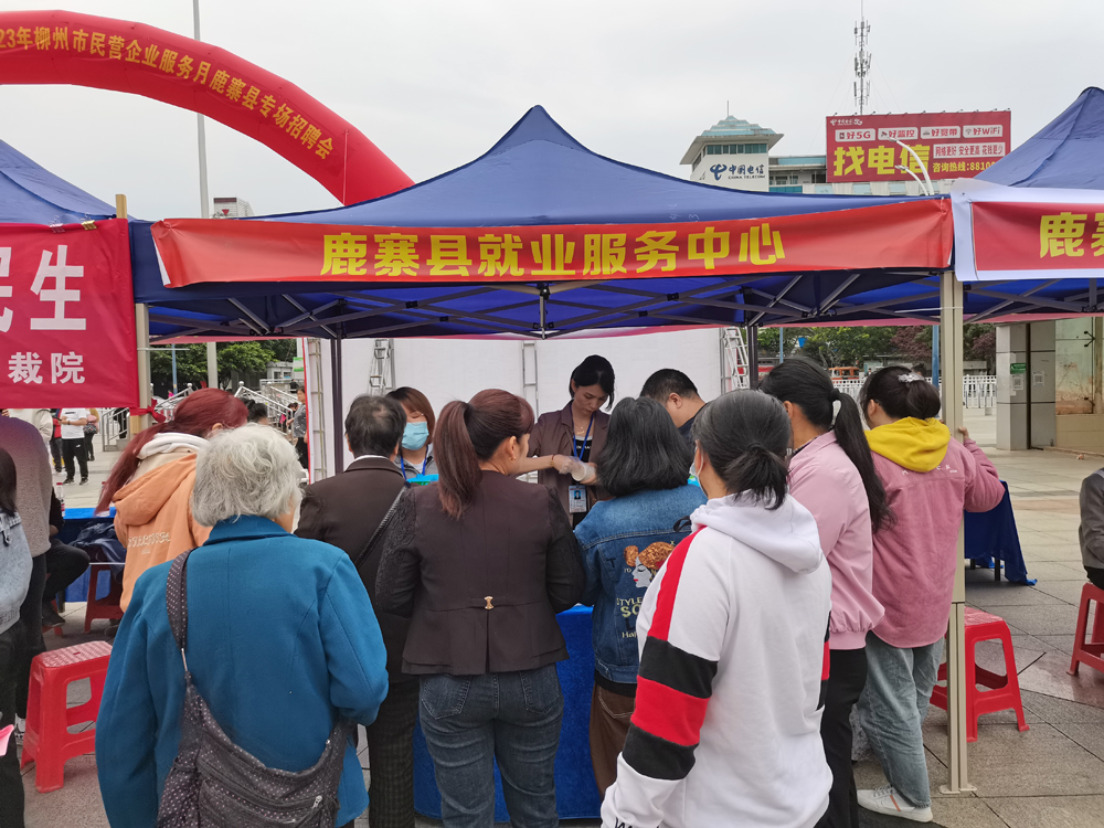 4月27日,柳州市人社局联合鹿寨县人社局,在鹿寨县城北文化广场举办“就业暖心·桂在行动”专项服务系列活动暨2023年柳州市民营企业服务月鹿寨县专场招聘会,吸引了来自我县以及柳州市柳南区和柳东新区的49家企业参与招聘。