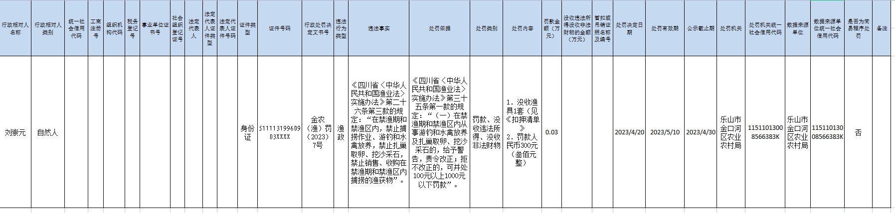 金口河区农业农村局行政处罚决定