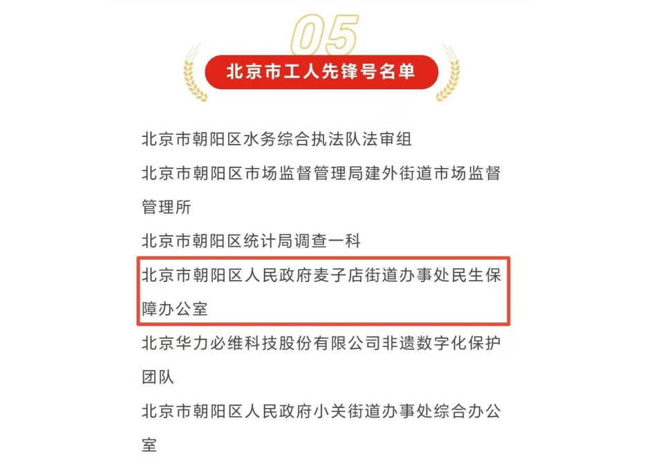 喜报丨麦子店街道民生保障办公室荣获“北京市工人先锋号”荣誉称号!