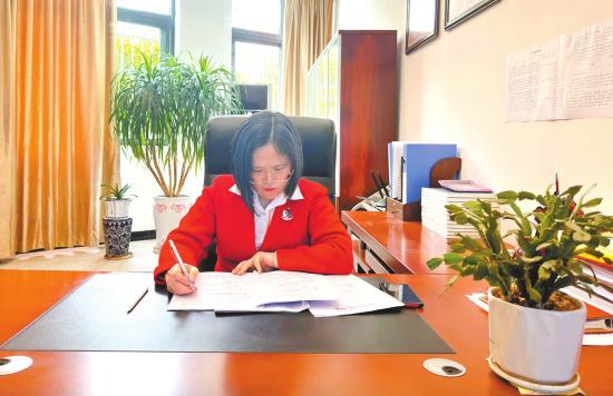郑海燕在办公中。