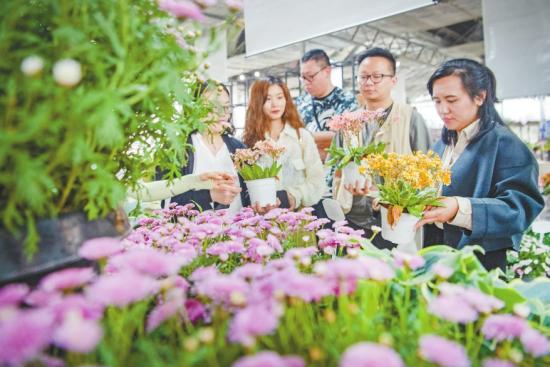 游客在种植基地内选购花卉。新华社记者唐奕摄