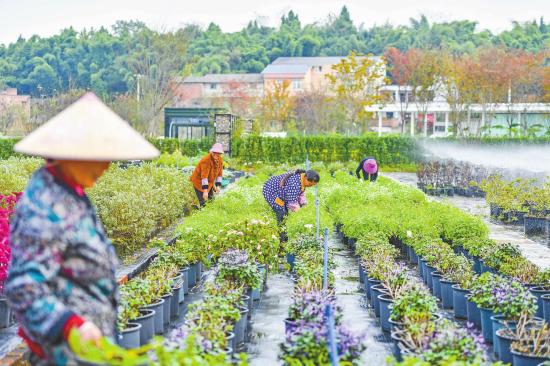 花农正在花卉基地里忙碌。 新渝报记者瞿波摄