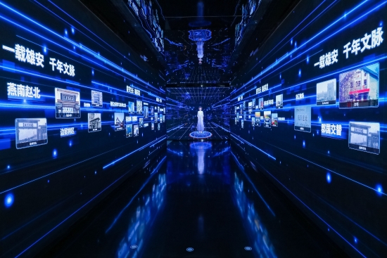 “雄安印象”总建筑面积约5300平方米,是集城市体验、艺术展陈、休闲娱乐功能于一体的综合性文化场馆。该场馆一层为雄安印象·城市厅,二层为雄安印象·艺术厅。其中,城市厅由“雄安·共生”“雄安·共建”“雄安·共享”三个展区组成,在增强现实AR、裸眼3D、多媒体触屏互动等数字科技的加持下,呈现了科技城市交融共生的数字景观,展示了雄安历史文化脉络和建设发展历程。艺术厅以常设展、特展、跨界活动、线上展览等多种形式贯穿全部展厅及公共空间,打造雄安文化交流、艺术探讨和传播的文化艺术实践基地。