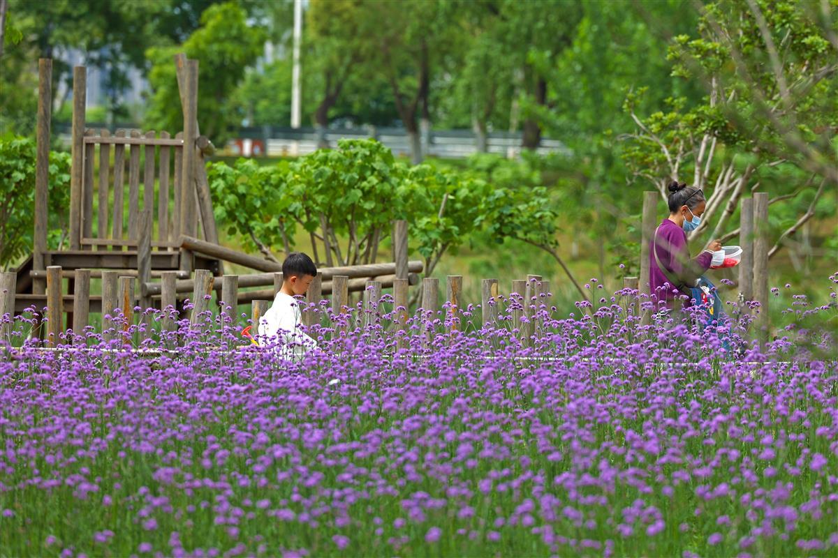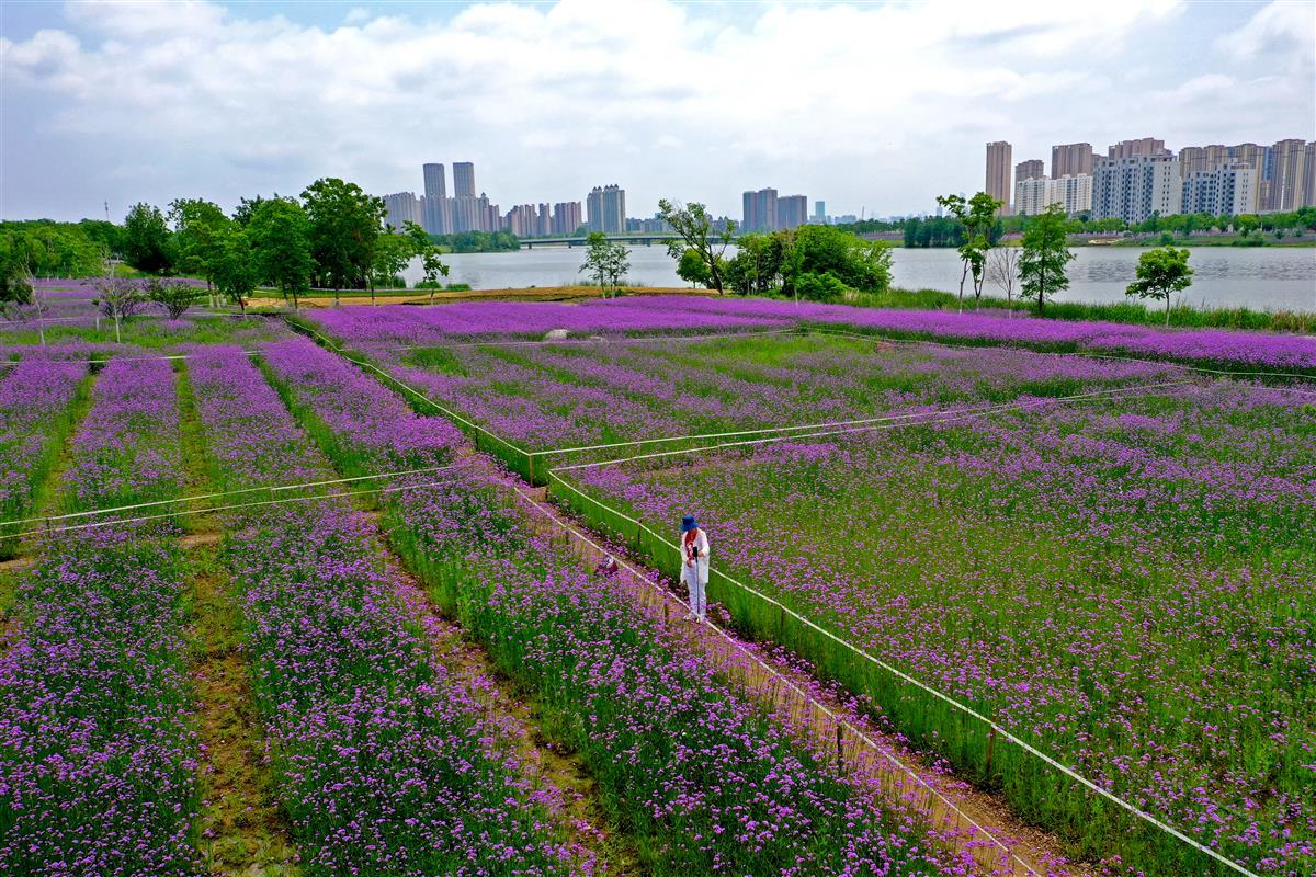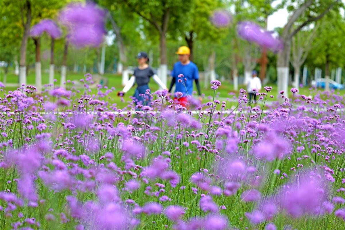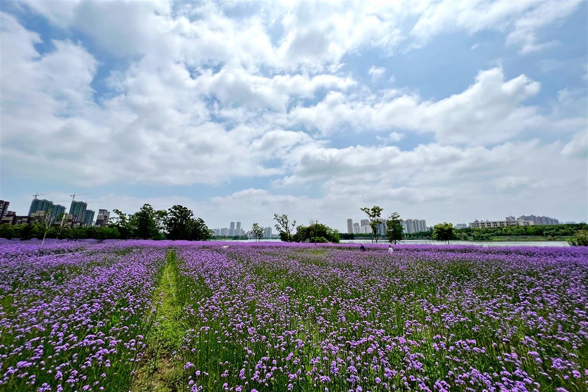武汉径河畔有片紫色花海