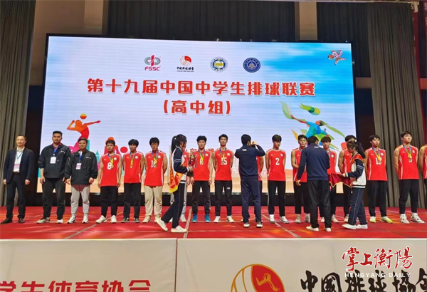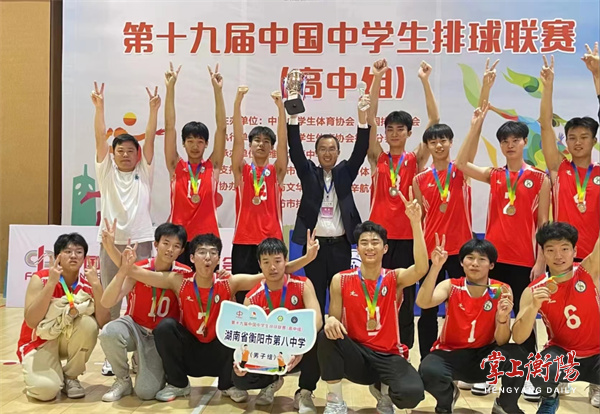 5月6日晚,由中国中学生体育协会、中国排球协会主办的2023第十九届中国中学生排球联赛高中组比赛在山东潍坊落下帷幕。衡阳市八中男排在本次赛事中不畏强敌、顽强拼搏,夺得季军,创造了湖南省中学生男子排球队在该项赛事中的最好成绩。