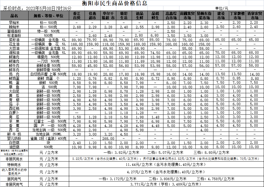 【物价】 2023-5-8衡阳市民生价格信息